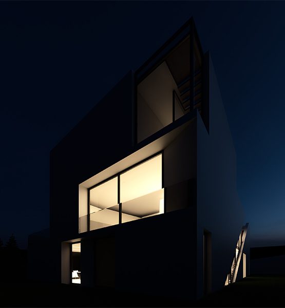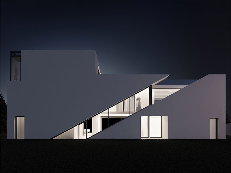 The back façade, in rupture with the front façade, boasts a single movement, a whole entity, a slit that follows the vertical circulation that becomes a gallery linking the different floors to the upper terrace next to the master bedroom.