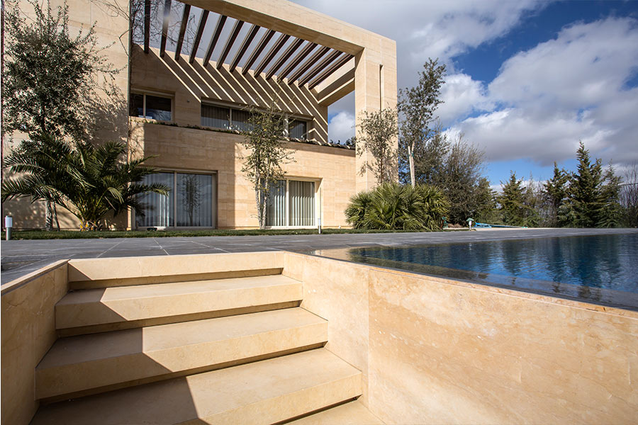 This complex residences become a series of stone monoliths emerging from the ground, built in local materials, dominating the top of the hill, following the sloppy topography, offering multiple sceneries and suspended gardens, patios and shaded areas.