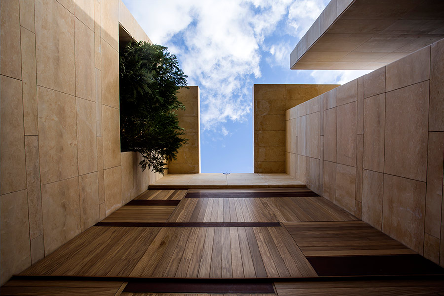 A play of patios, slits, walls, slabs and volumes, create the whole spatial experience that can be called the residential museum.